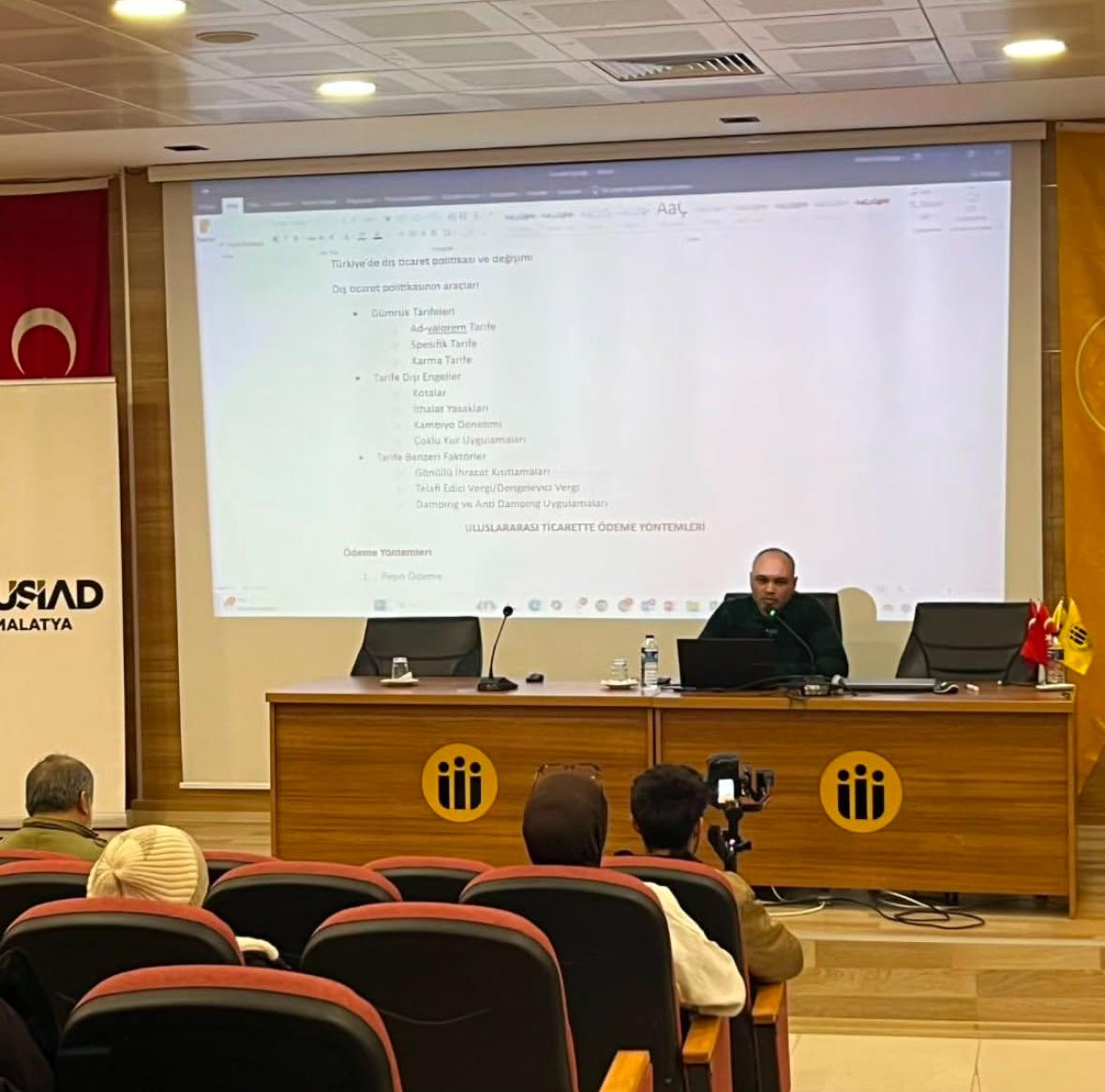 Malatya Turgut Özal Üniversitesi, Toplum ve Sanayi İş Birliği Koordinatörlüğü olarak katılım sağlanan "Yabancı Uyruklu Öğrencileri Dış Ticaret İşlemleri Hakkında Bilgilendirme ve Eğitme" programında bölümümüzün değerli öğretim üyeleri Doç. Dr. Ahmet ŞİT ve Dr.Öğr. Üyesi Metin KETBOĞA sunumlarıyla katkı sağlamıştır.