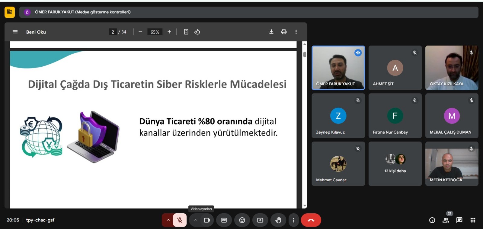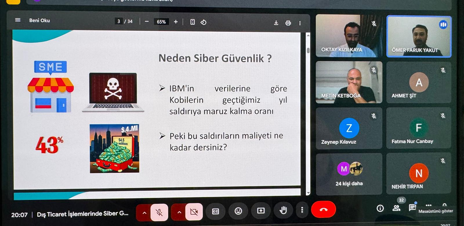 Malatya Turgut Özal Üniversitesi, Toplum ve Sanayi İş birliği Koordinatörlüğü olarak düzenlenen "DIŞ TİCARET İŞLEMLERİNDE SİBER GÜVENLİK" isimli programda dış ticaret işlemlerinde yaşanan siber güvenlik sorunları ve bu sorunlara geliştirilen çözüm önerileri ele alındı.